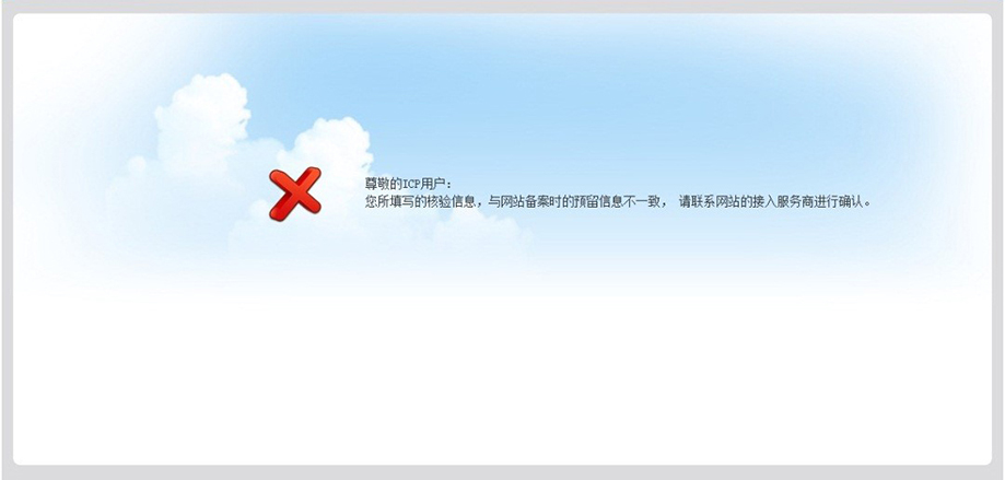 2.若 24小時(shí)內(nèi)沒有進(jìn)行驗(yàn)證或驗(yàn)證失敗,備案信息將會(huì)自動(dòng)退回。分為以下兩種情況: