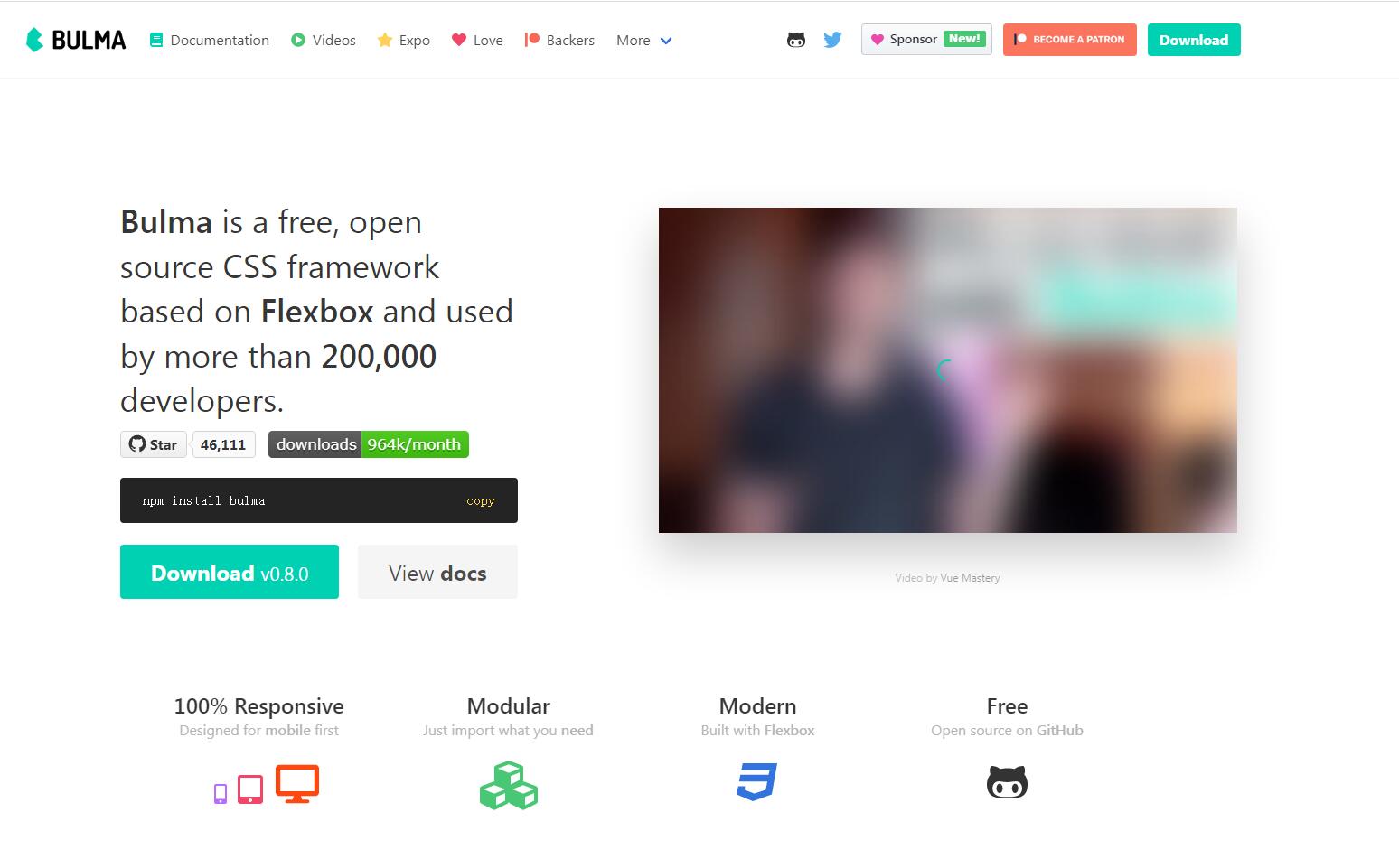 Bulma 是一個(gè)基于 Flexbox 布局技術(shù)的免費(fèi)、開源的現(xiàn)代 CSS 框架,它提供了易于使用的前端的組件,您可以輕松地組合這些組件來(lái)構(gòu)建響應(yīng)式Web界面。