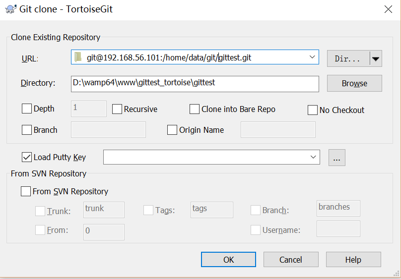 $ git clone ssh://git@192.168.56.101:7700/home/data/gittest.git