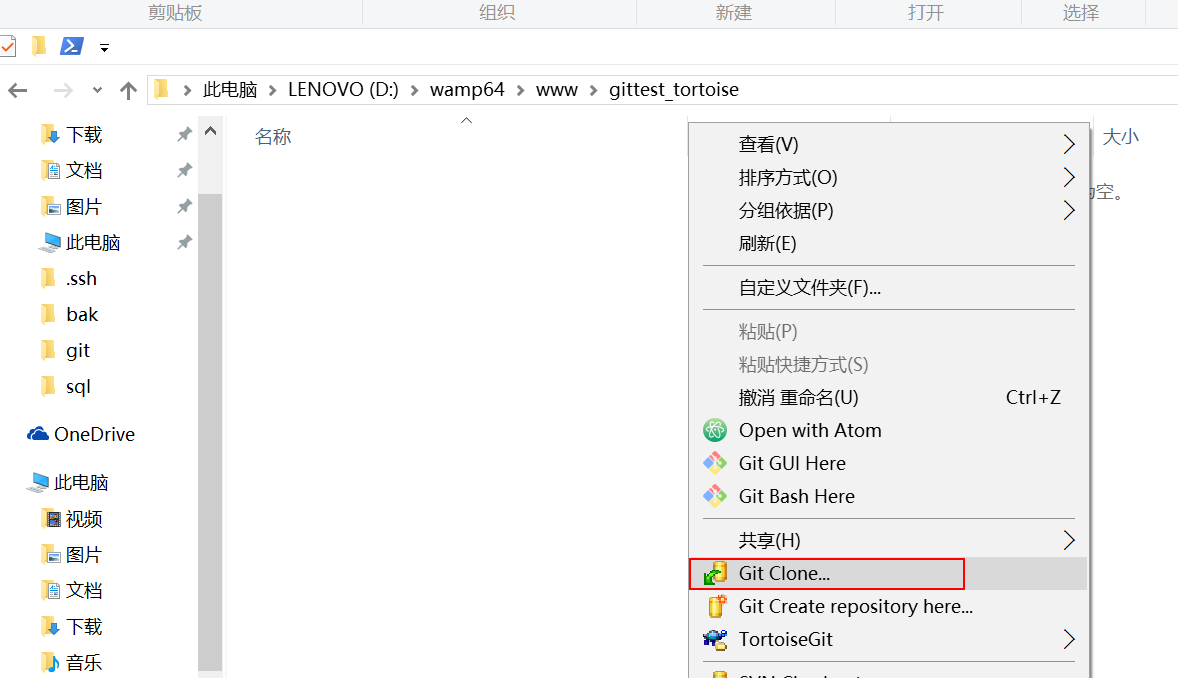 進入 Git Bash 命令行客戶端,創(chuàng)建項目地址(設(shè)置在 d:/wamp64/www/gittest_gitbash)并進入: