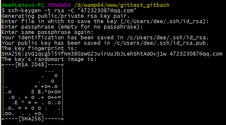 $ ssh-keygen -t rsa -C "472323087@qq.com"