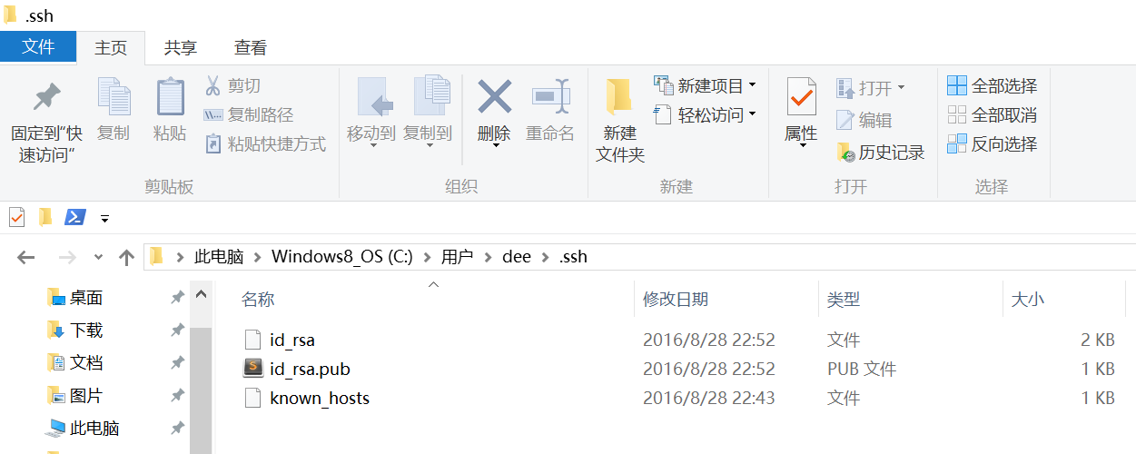 此時 C:\Users\用戶名\.ssh 下會多出兩個文件 id_rsa 和 id_rsa.pub