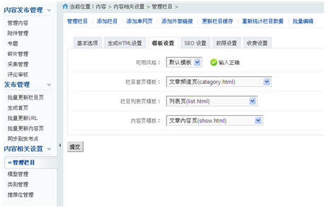 模型可綁定欄目,新建欄目時選擇模型類型, 這樣在當前欄目下添加內容時將繼承模型的定義。并自動加載被選模型的模版設置。如下圖所示: