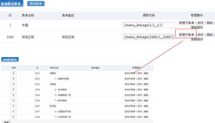 接下來為剛才添加的聯動菜單,添加菜單數據,如下圖所示: