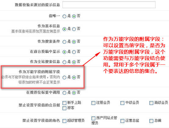 字段管理設置時有一些選項,其中有些是比較重要的設置。現介紹如下: