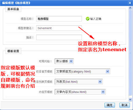 每個模型都可以指定對應的默認模版,添加欄目時選擇對應模型,可默認加載模型對應模版。如下圖所示: