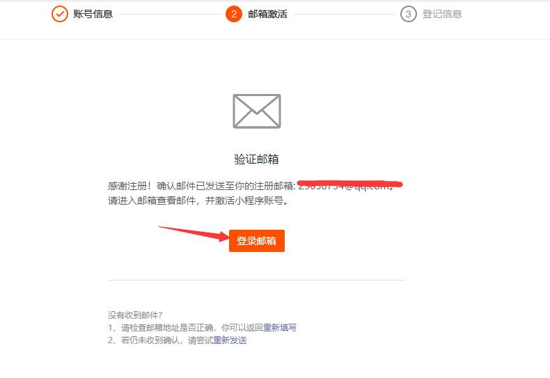 點(diǎn)擊登錄郵箱,系統(tǒng)會(huì)發(fā)送一封激活郵件到所填寫的郵箱賬號(hào),點(diǎn)擊郵件中的鏈接,跳轉(zhuǎn)至“登記信息”頁(yè)面。