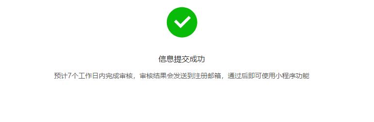信息提交成功,7個(gè)工作日內(nèi)完成審核,審核后,即可使用小程序功能。