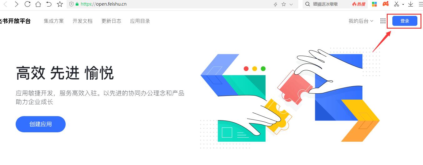 (1)登錄飛書小程序官網(wǎng) https://open.feishu.cn/ 點(diǎn)擊右上角“登錄”,“立即注冊(cè)”,進(jìn)行帳號(hào)注冊(cè)。