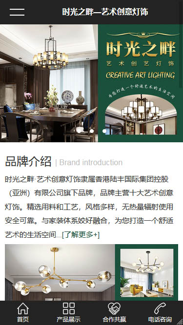 風信網絡響應式建站某燈飾有限公司,品牌主營十大藝術創(chuàng)意燈飾,精選用料和工藝,風格多樣,無熱量輻射使用安全可靠。與家裝體系較好整合,為您打造一個舒適藝術的生活空間。